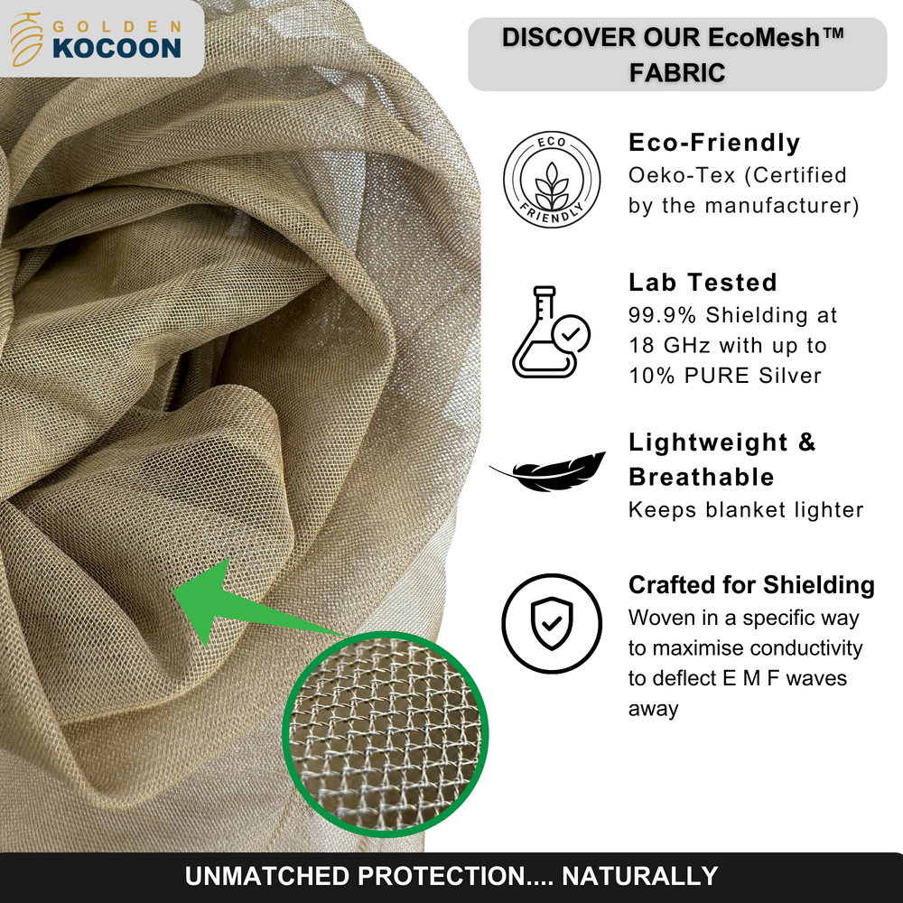 In contrast, Golden Kocoon products are made from Faraday fabric, designed to block, deflect, or reflect RF radiation away from your body. Our fabrics are independently lab-tested and can be verified using EMF meters, showing measurable reductions in exposure to Wi-Fi, 5G, Bluetooth, and other RF frequencies. When it comes to protecting your health, we believe in results you can measure.