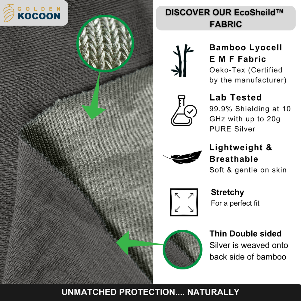 What sets us apart is our dedication to using natural fibres, including our signature bamboo-based EMF shielding fabric, a first of its kind.