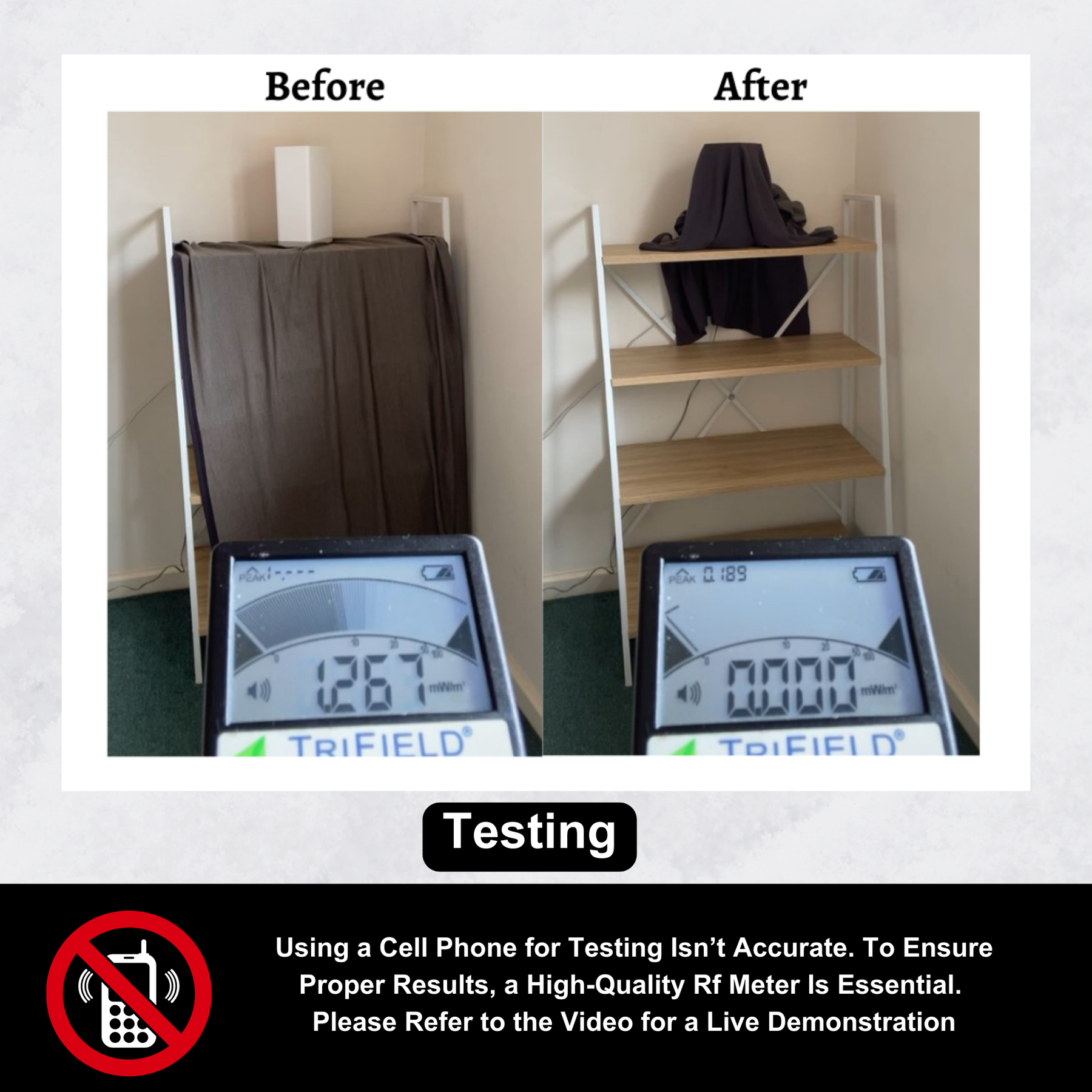 - Blocks up to 99.8% of RF radiation - independently lab-tested to block up to 99.8% (~34-54 dB across 30 MHz - 10 GHz), including 5G, Wi-Fi & Bluetooth. This fabric contains up to 20 grams of pure silver (per square meter)